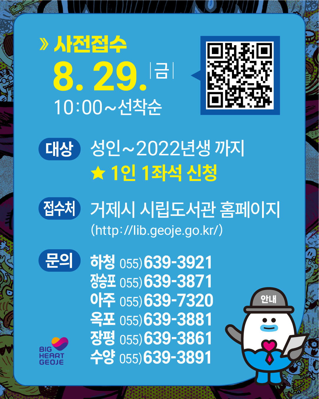 7. 접 수 처: 거제시 시립도서관 홈페이지(https://lib.geoje.go.kr/) 온라인 수강 신청