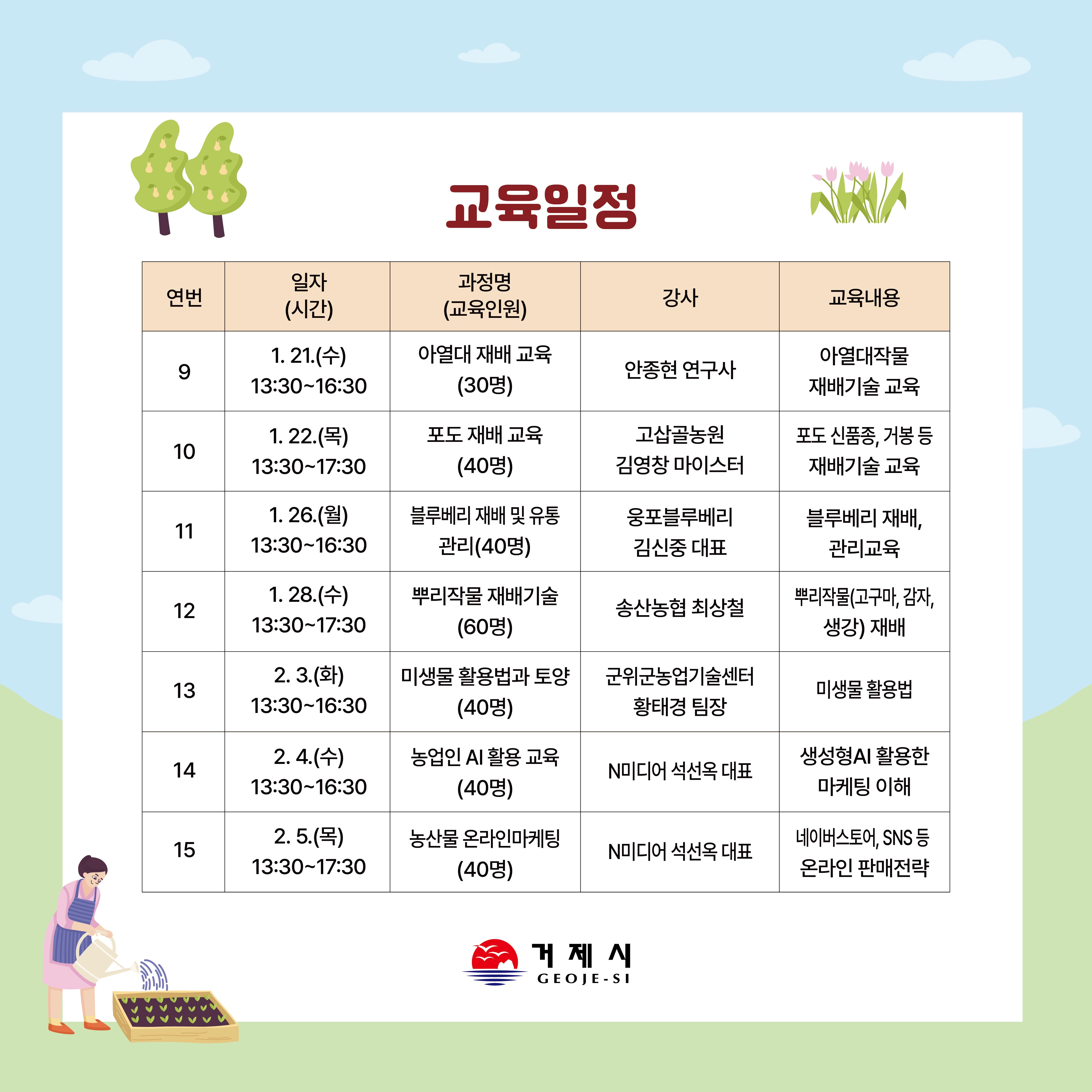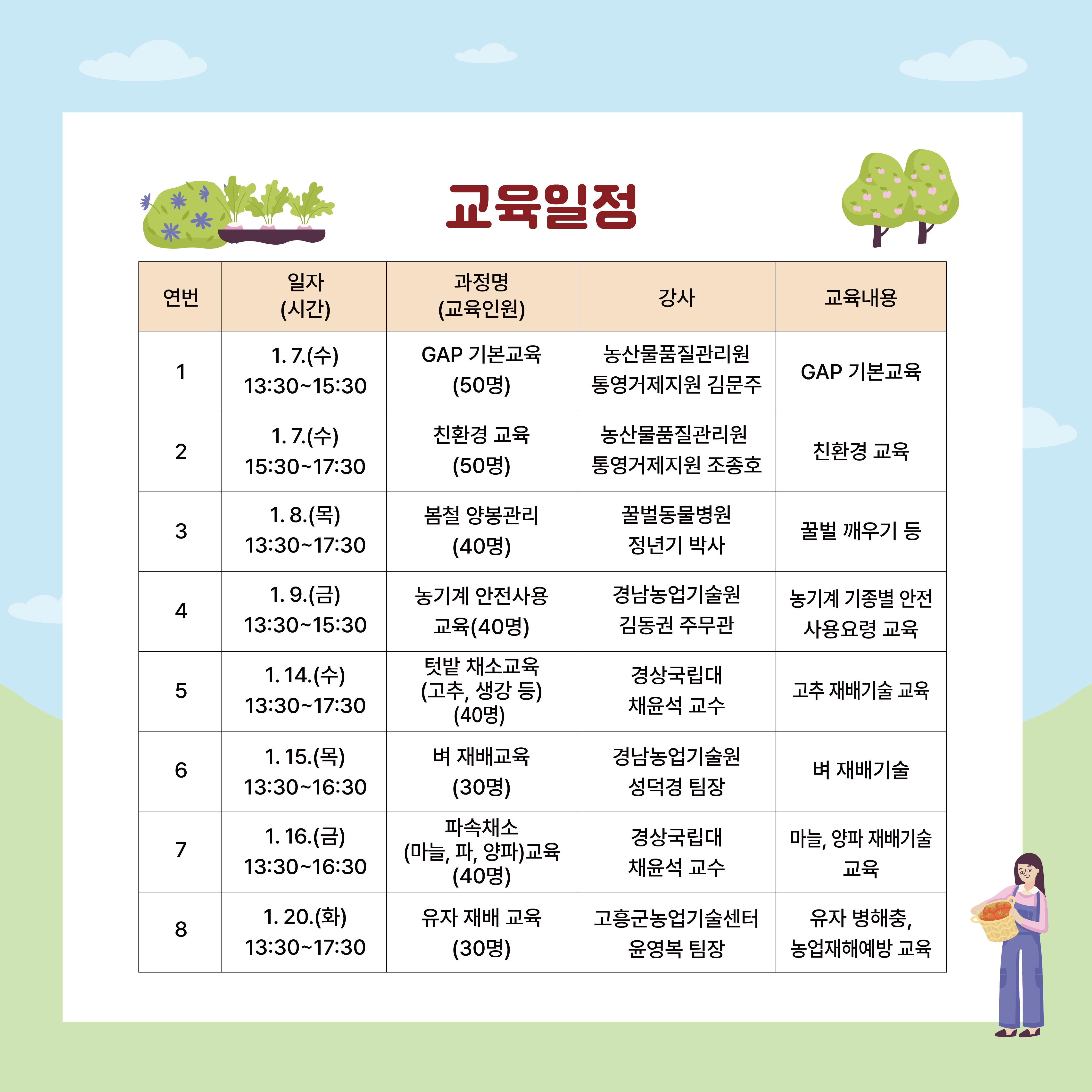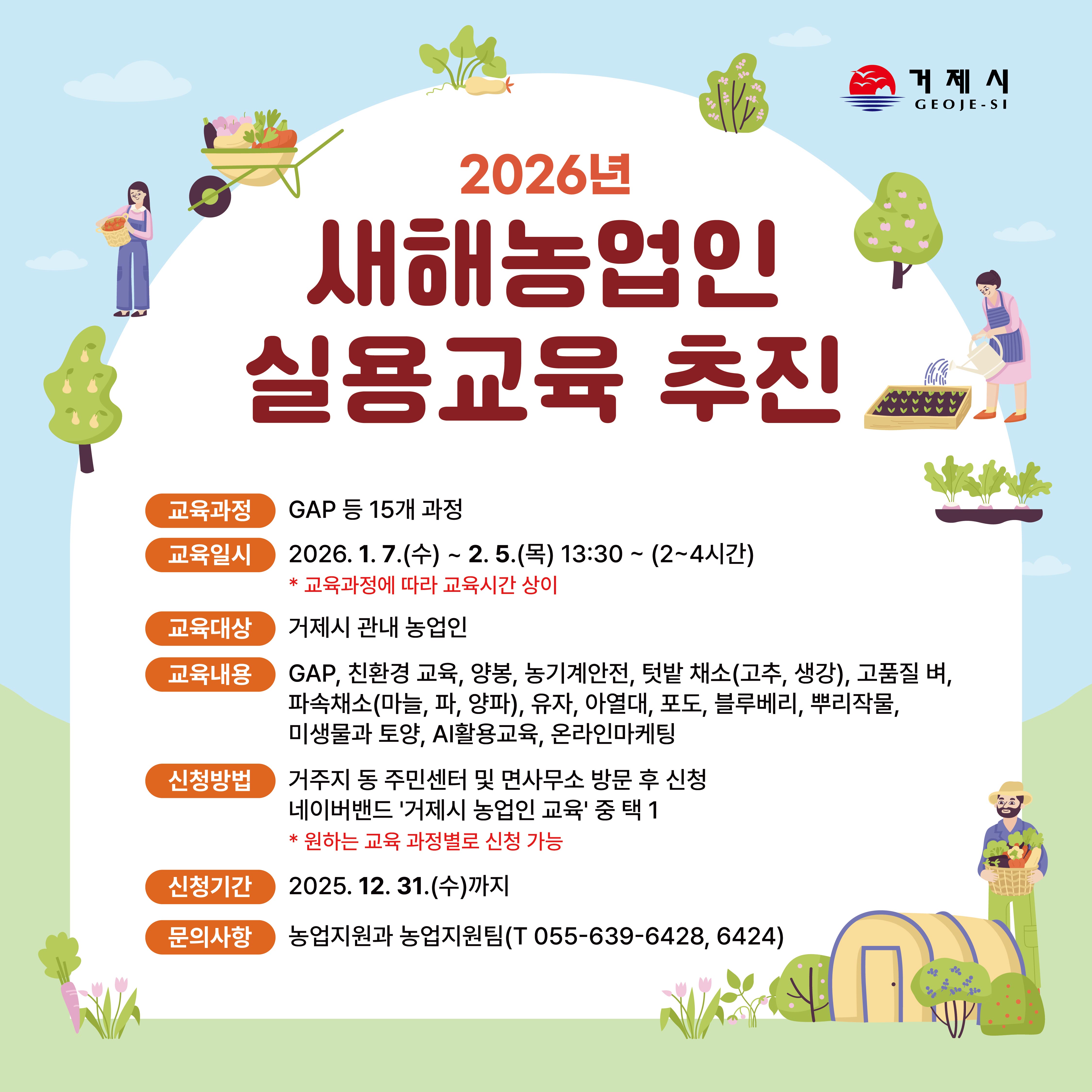 2026년 새해농업인실용교육 교육생을 다음과 같이 모집하오니, 희망자께서는 기한 내에 신청해 주시기 바랍니다.