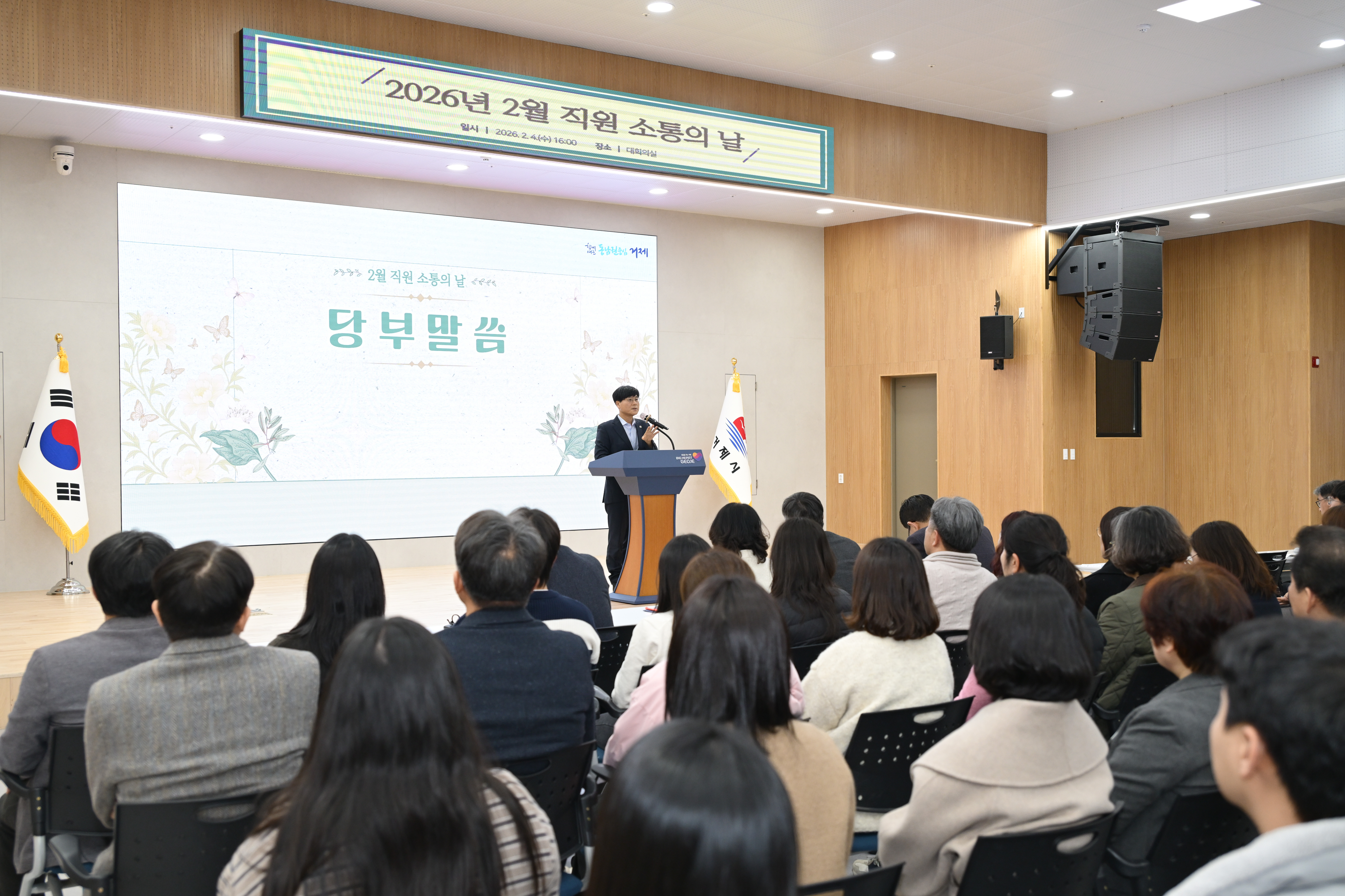 거제시(시장 변광용)는 지난 4일 시청 대회의실에서 직원 200여 명이 참석한 가운데 ‘2026년 2월 직원 소통의 날’ 행사를 개최했다.
